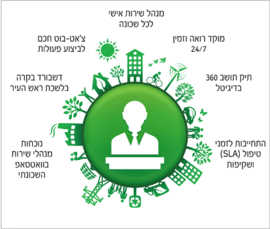 ומאפשרת לדרג הבכיר לנהל את העיר על בסיס נתונים מדויקים ולא על בסיס תחושות בטן. במקביל למערכות הניהול הפנימיות, גם הממשק מול התושב עובר שדרוג מקיף. בימים אלה מקודמים מכרזים להקמת אתר אינטרנט חדשני ונגיש, ולצידו צ'אט-בוט חכם שיאפשר לבצע מגוון פעולות ושירותים בקלות דרך הטלפון הנייד. גולת הכותרת הדיגיטלית תהיה מערכת "תיק תושב 360" – פלטפורמה מתקדמת שרואה את התושב ומשפחתו כמכלול אחד, מרכזת את כל הצרכים והאינטראקציות מול העירייה במקום אחד, ומאפשרת מתן שירות מותאם אישית, יעיל ומהיר.