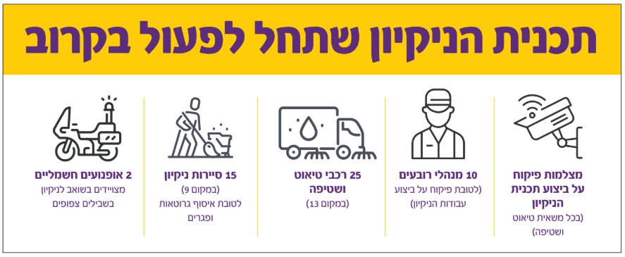 בימים אלו, יוצאת לדרך תוכנית חדשה ורחבת היקף, שנועדה לשנות מן היסוד את מערך התברואה והניקיון בעיר. מעבר ממודל של מבצעי ניקיון נקודתיים, ליצירת שגרת עבודה חדשה ואינטנסיבית המבוססת על תגבור משאבים וטכנולוגיה.